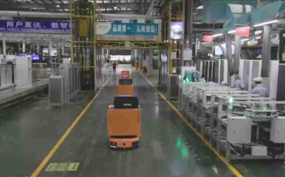为车载冰箱物流配送打造的智能解决方案,,,包含产中物流通过潜伏举升AMR搬运至线边,,,,产后成品物流智能仓储,,,,流程包含产中物流智能齐套入库,,,,线边安灯叫料AMR智能配送至线边,,,成品入库、、出库,,,,通过无人堆高车机器人,,智能仓储管理替代人工作业管理,,,实现更高存储、、、更高效率、、更具柔性化的解决方案。。